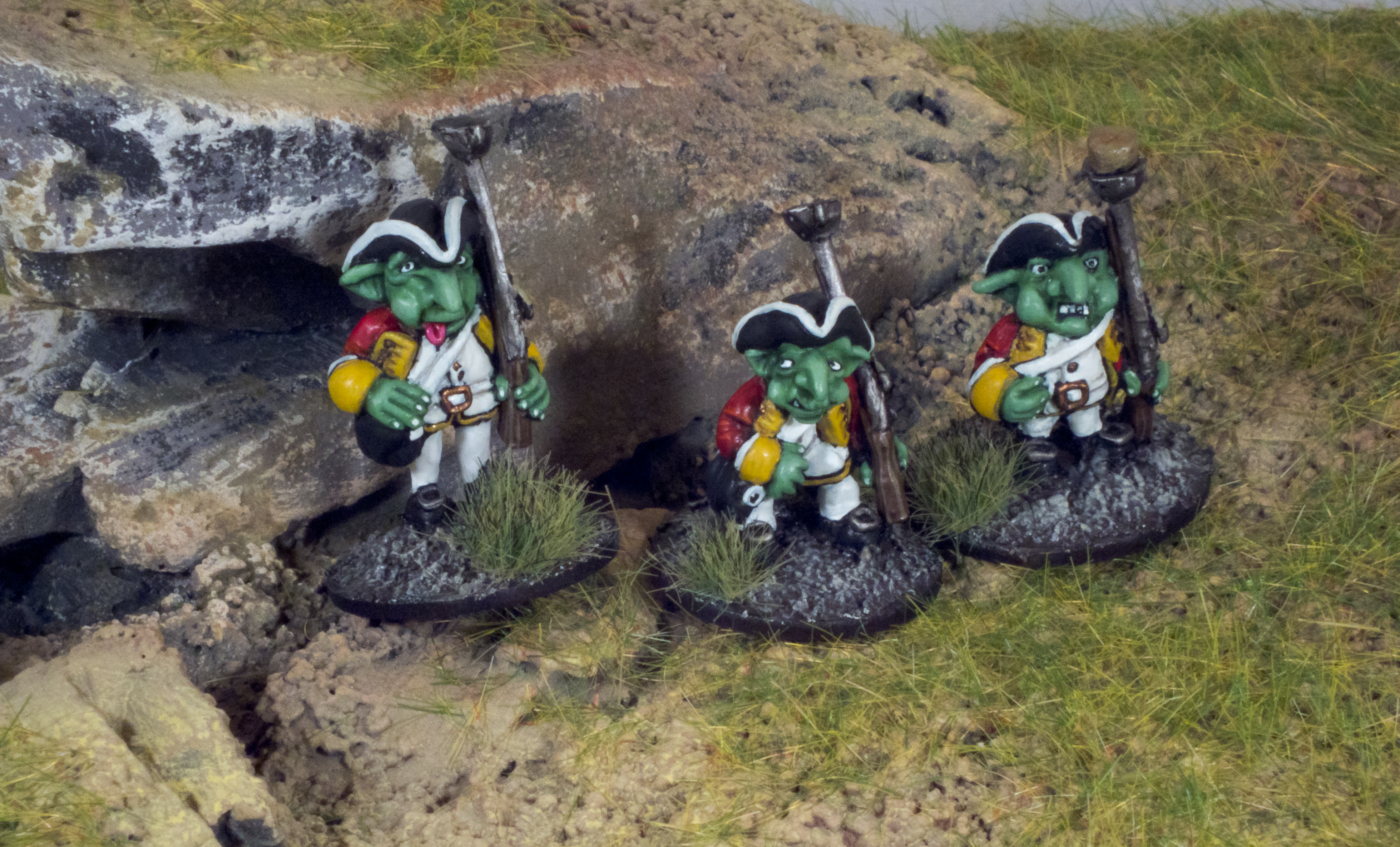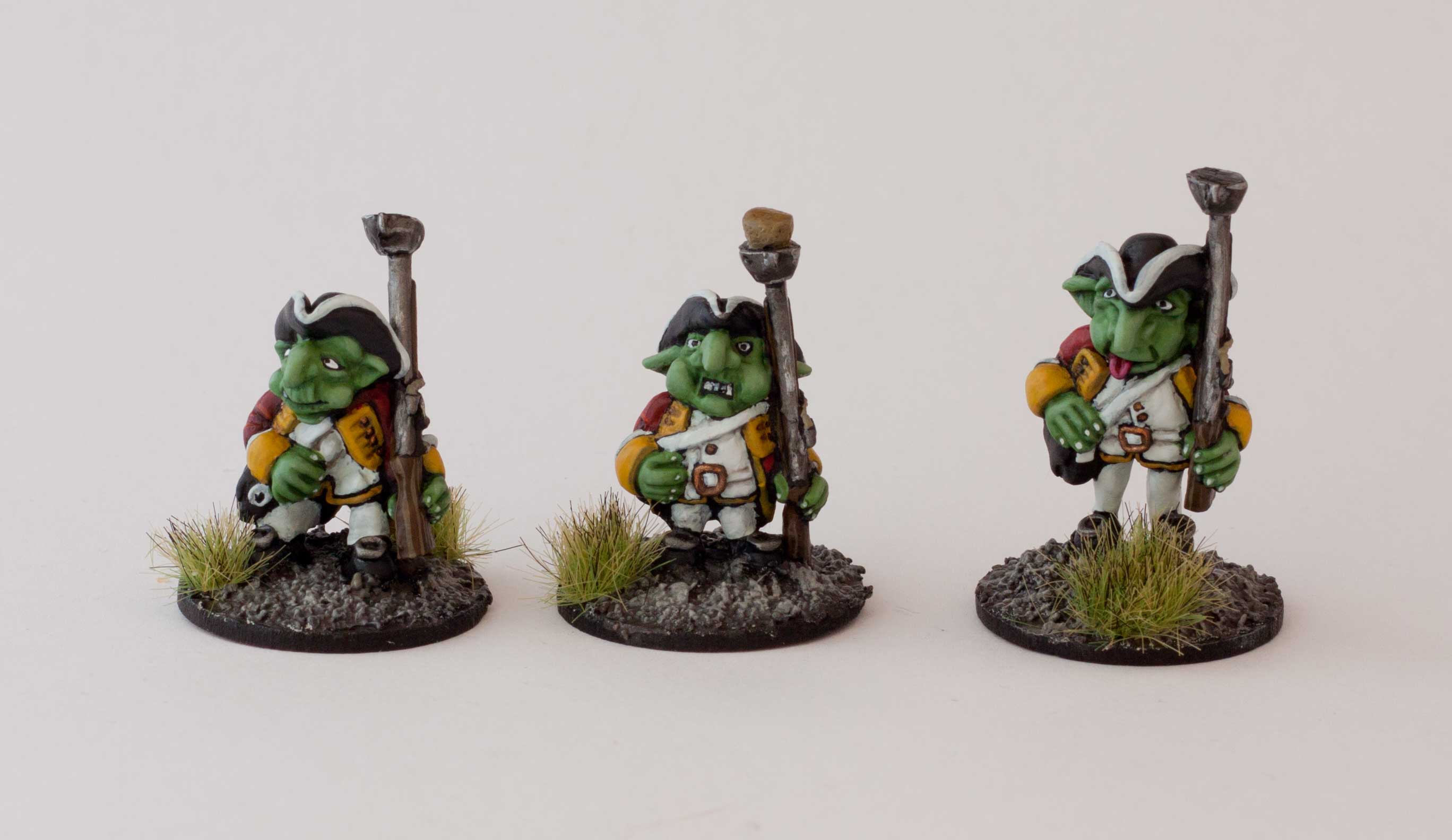 Die Tippelgruppen des Empire setzen sich aus all jenen Goblins zusammen, die nicht bei drei auf dem Baum waren, als die Rekrutierungstrpps durch die Dörfer zogen. Bekannt gemacht mit der üblichen Rekrutierungsmethode der Rotröcke (Welche von alters her auf der verschwenderischen Nutzung von Alkoholika aller Art, Versprechungen und dem Einsatz stumpfer Hiebwaffen fußt) bleibt ihnen keine andere Wahl als in fremden Landen durch die Pampa zu marschieren oder in den liebevoll von den Offizieren „Kugelfänger“ getauften Großformationen auf eine dieser Tage von den Sanitätern häufig diagnostizierte Bleivergiftung zu warten. Nichts desto Trotz sind viele von Ihnen dumm oder verzweifelt genug um dem Feind mutig und entschlossen entgegen zu treten.