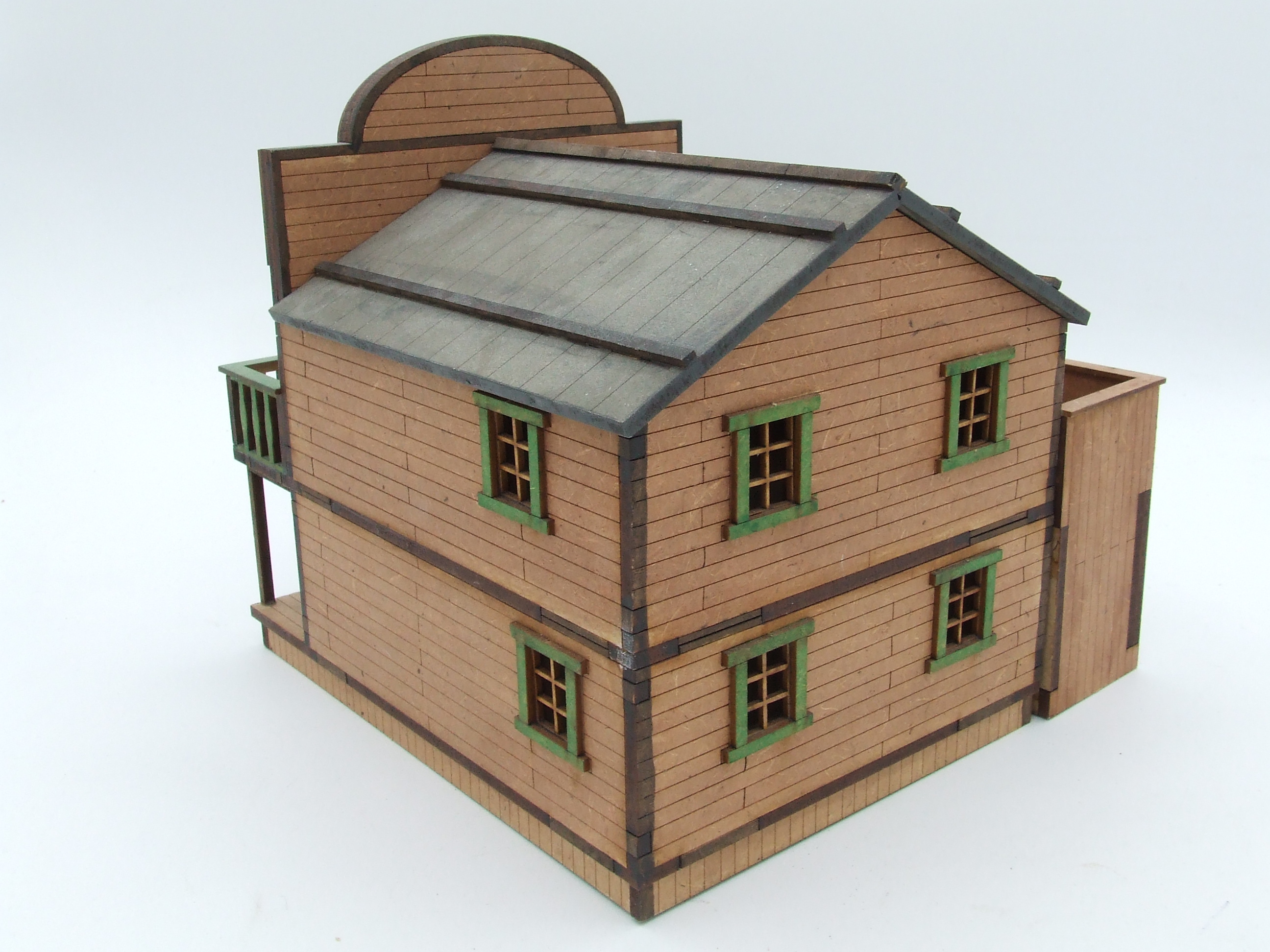 Old west house with sattleback roof, two storey.